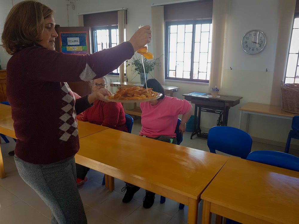 Um prato simples ou especial. Cozinhar é divertido, traz boas lembranças e memórias afetivas. Os utentes do Lar Residencial S. Vicente regressaram ao Centro Educativo Cerro D’Ouro para participarem na atividade “o que é doce nunca amargou”. Desta vez, os utentes reuniram-se para confecionarem fritos de mel que ficaram deliciosos. No final da atividade degustaram um lanchinho onde não faltaram os fritos e um chá de bela luísa quentinho. Agradecemos às formadoras do Cerro D’Ouro por mais uma atividade que ajuda aos nossos utentes a melhorar a coordenação motora, a ativar a memória, a estimular a concentração, entre outros benefícios.
