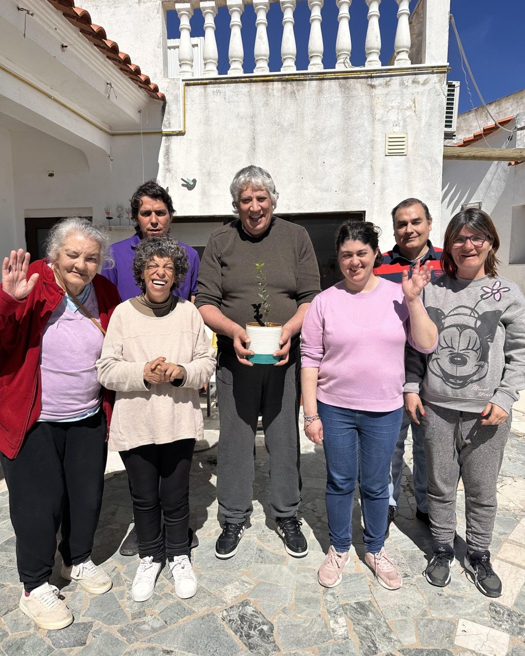 Também os utentes da Casa da Paz participaram ativamente nas comemorações do Dia da Árvore, com a plantação de um sobreiro. A atividade foi vivida com grande entusiasmo, proporcionando não só o contacto com a terra e o processo de plantação, mas também o reforço de valores como a entreajuda, o sentido de responsabilidade e a importância da preservação ambiental.